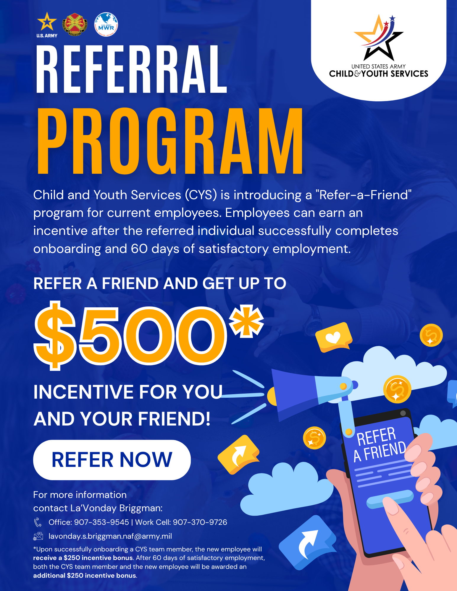 Child & Youth Services (CYS) is launching a Refer-a-Friend Program for current employees!