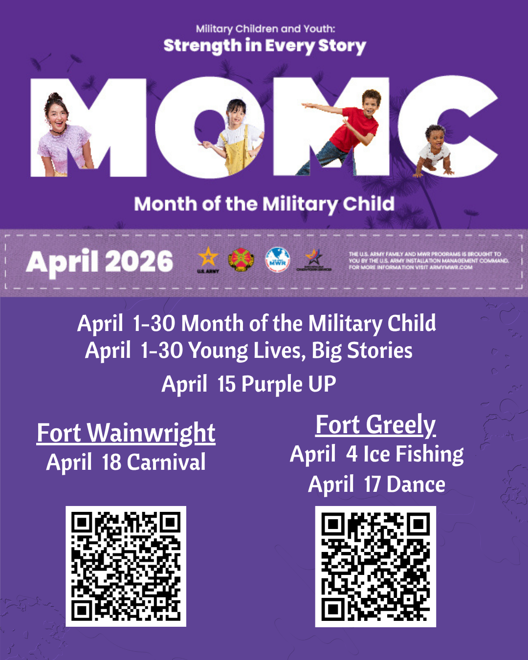 Month of the Military Child (MOMC) is observed each April to honor and celebrate military children and youth for their service, commitment and sacrifice in support of the Army's mission.