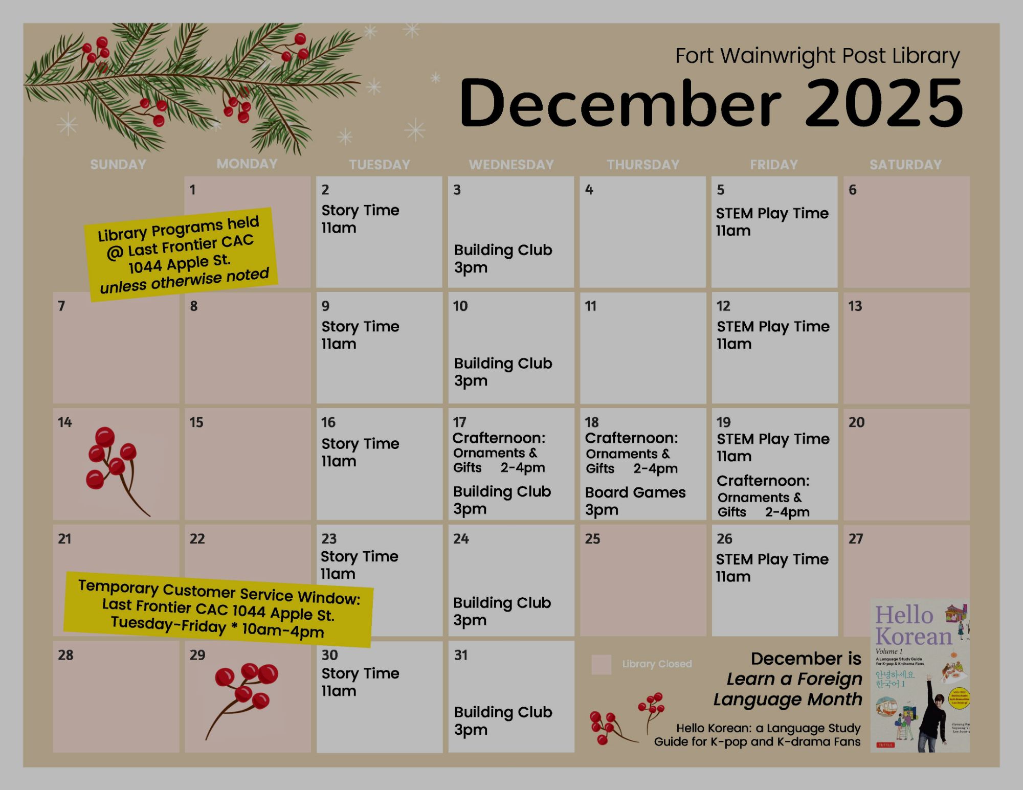 Register on Beanstack and stop by the Library at the Last Frontier CAC for a prize (while supplies last).