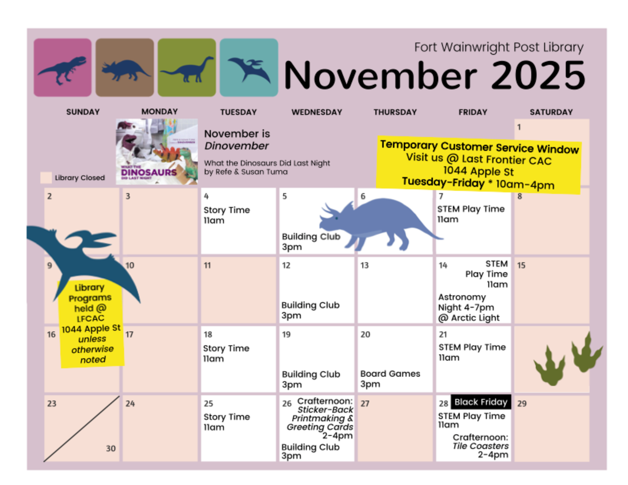 The Post Library has so much to offer for all ages, every month! Check out the events in the calendar: some are located at the Post Library, and some are hosted by the Post Library at other facilities. Download the November Calendar PDF here and December Calendar PDF here.